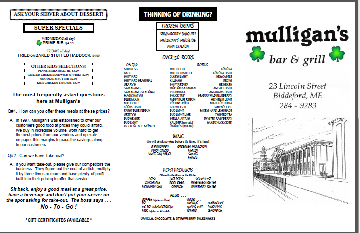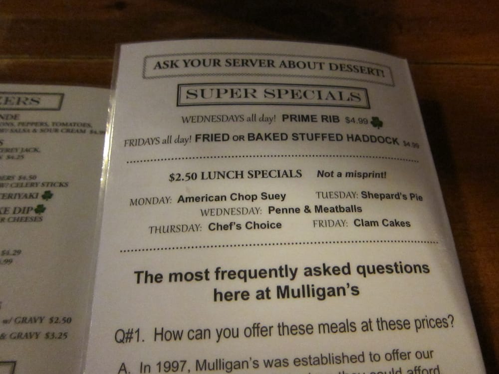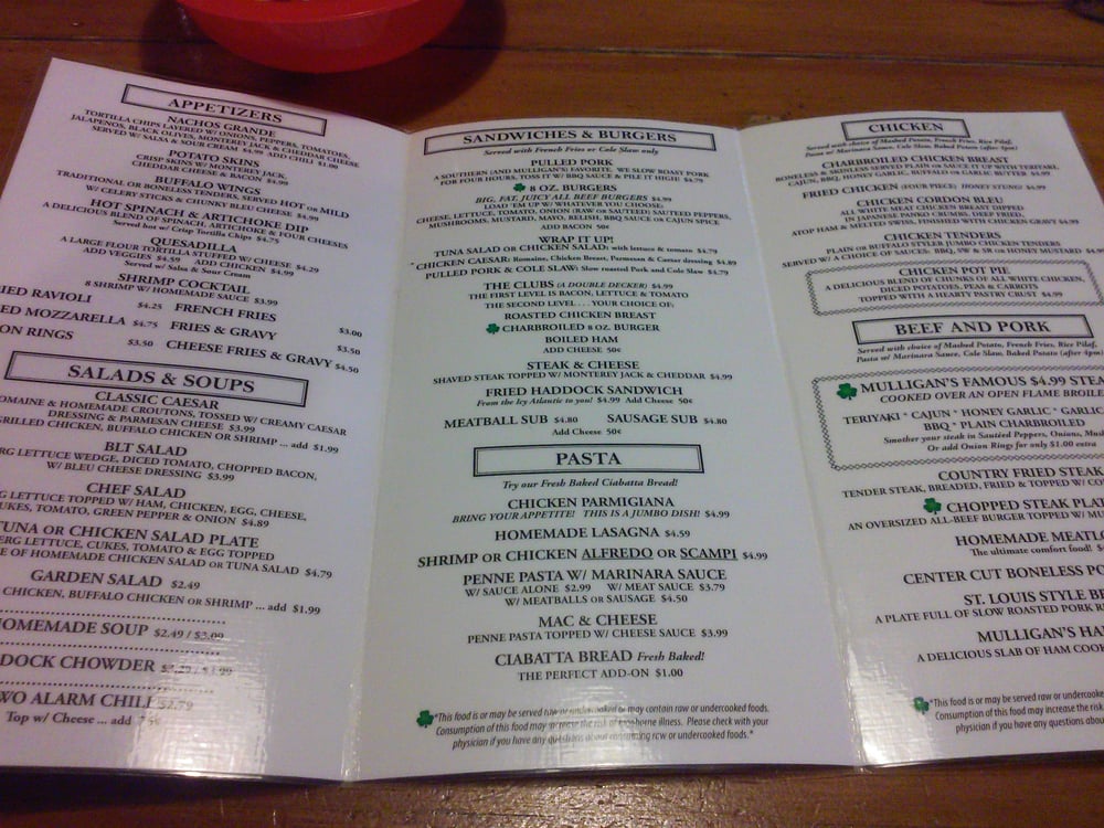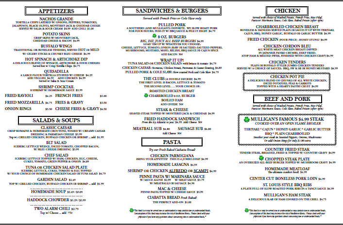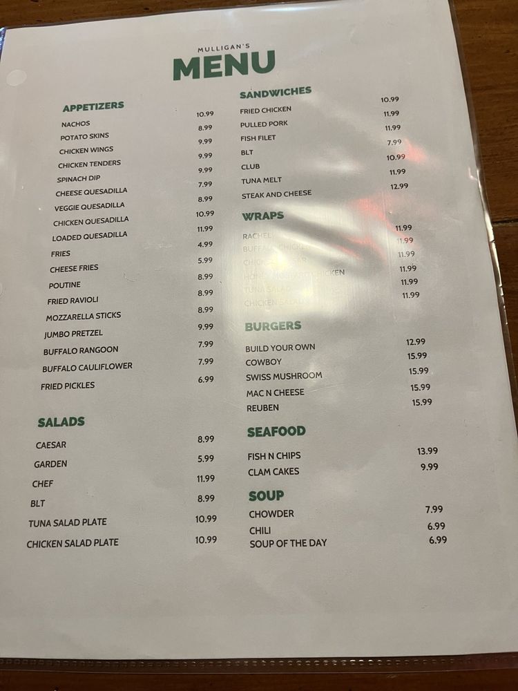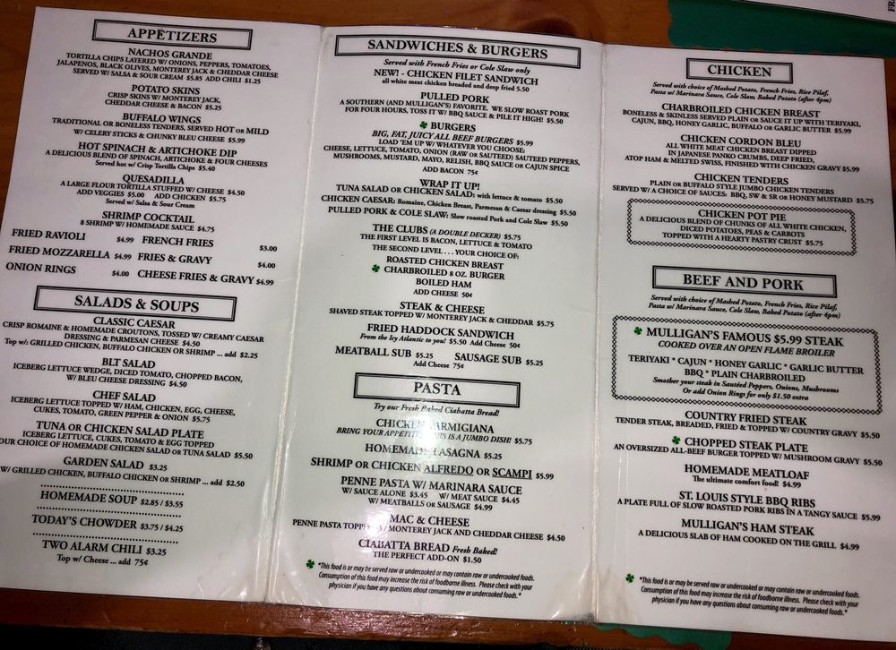 Mulligan's Menu (Update 2025)